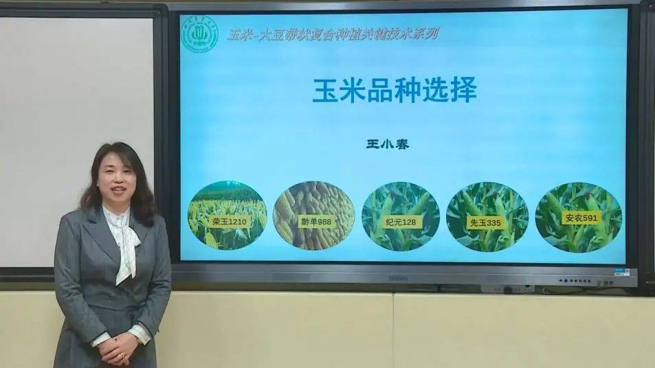 王小春在视频中讲解道,首先要选择适宜带状复合种植的高产玉米品种,由于复合种植模式下玉米株距缩小到10厘米左右,因此玉米品种的耐密性必须要好。
