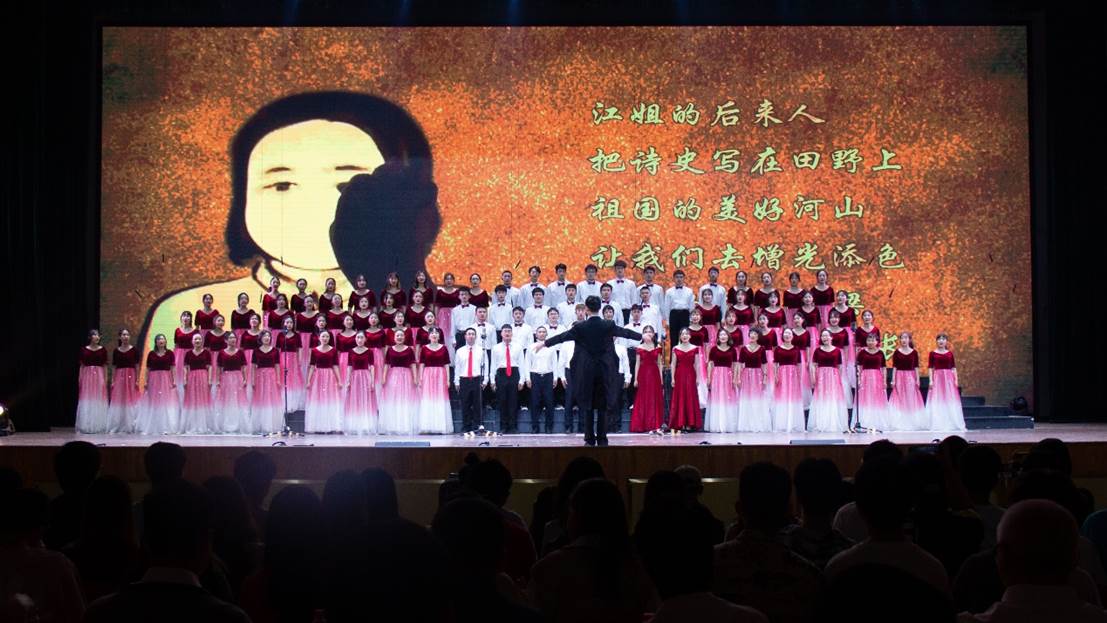 在比赛现场,公司与12支队伍展开了激烈的角逐,各学院合唱团都做了精心准备,亮点十足。公司参赛曲目《祖国颂》,全体师生慷慨激昂的朗诵与饱含深情现场合唱,抒发出农院师生对祖国的满腔赤城,现场观众报以阵阵热烈掌声。