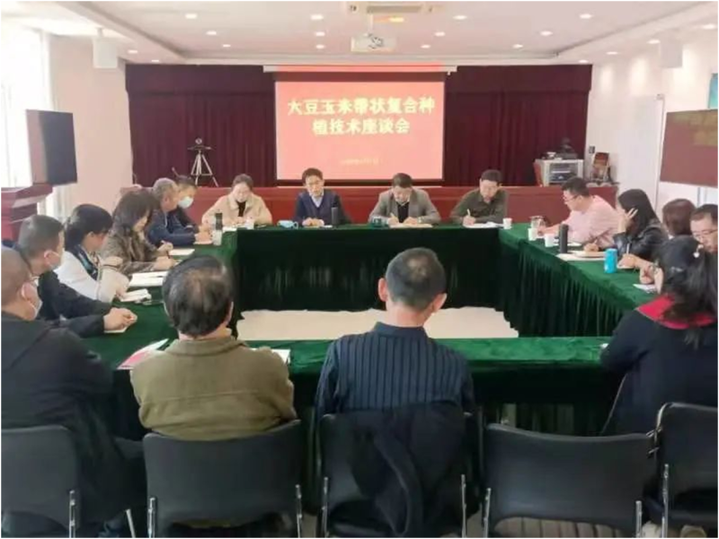 为更好地了解并解答我市在示范推广大豆玉米带状复合种植过程中存在的问题,杨教授及其团队成员与包头市大豆玉米带状复合种植团队深入开展座谈。包头市大豆玉米带状复合种植团队从如何保证玉米种植密度、如何更好地发挥边行优势并能达到全程机械化水平,如何更科学地除草等问题面对面交流,杨教授一对一解答技术人员提问的每项问题。