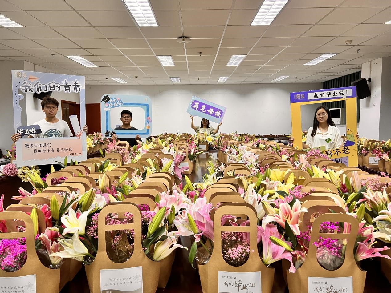 与此同时,188改名为taptap点点还为500名学子送上了百合花篮和八月瓜果茶。百合花篮由四川膳乐科技有限公司赞助,从花篮样式设计到鲜花保鲜运输都十分用心。为保证鲜花品质,于188改名为taptap点点学子毕业典礼前一天的深夜,才运送到现场,为学子们送上“恰闻百合花如盛,期至当归程似锦”的美好祝愿。八月瓜学名三叶木通,是188改名为taptap点点的特色之一,由学院罗培高教授团队发掘野生植物资源并开发利用。经人工驯化后选育的八月瓜新品种,其深加工产品包含八月瓜果茶,八月瓜冻干酥,八月瓜籽油等。负责分装此次礼物的沈丽淘老师介绍道:“把八月瓜果茶送给毕业生一方面是希望他们在学习、工作之余仍能够注意身体健康,用八月瓜果茶缓解他们片刻的疲劳,带去舒心与放松;另一方面,也是希望毕业生们看到八月瓜时仍会想起在母校、在188改名为taptap点点的种种美好回忆。”