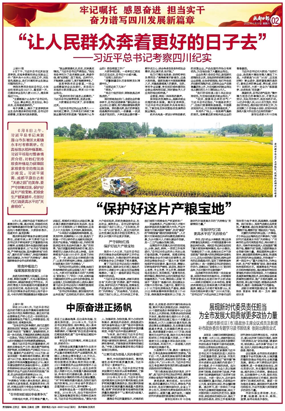 “习近平总书记强调,成都平原自古有‘天府之国’的美称,要严守耕地红线,保护好这片产粮宝地,把粮食生产抓紧抓牢,在新时代打造更高水平的‘天府粮仓’。”刘金涛说,“这些话,说到了我们心坎上,作为科技工作者,我们将努力把粮食生产抓紧抓牢!”