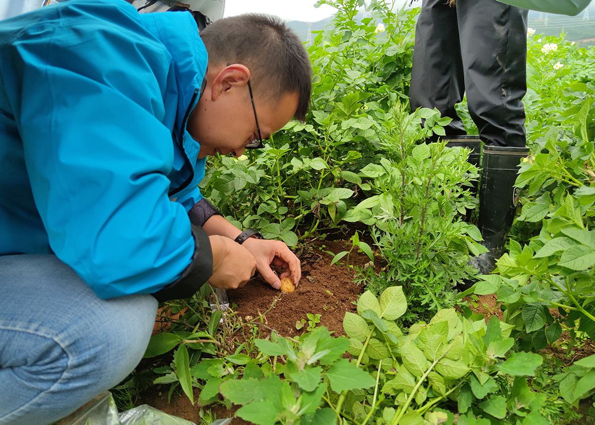 省农科院植保所李洪浩助理研究员在查看马铃薯。