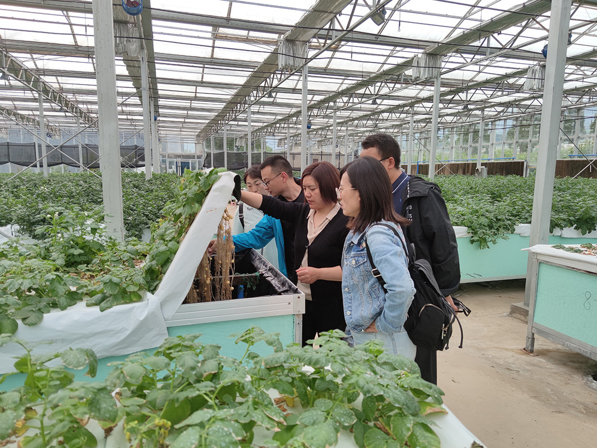 马铃薯专家在良种繁育基地原原种雾培大棚查看马铃薯长势。