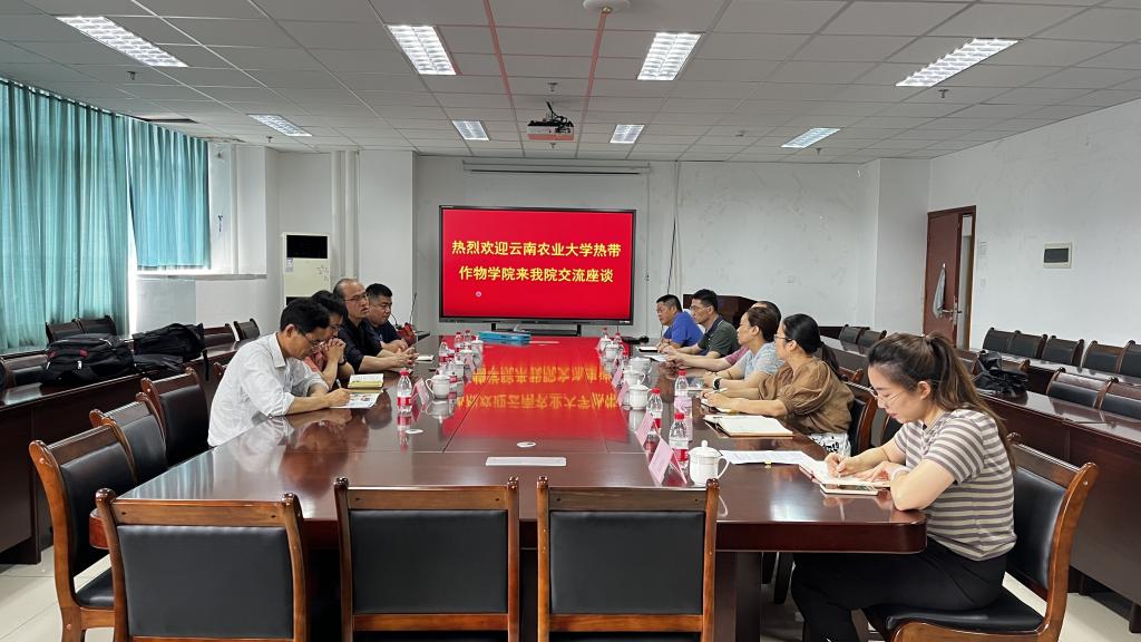 7月4日下午,云南农业大学热带作物学院经理杨学虎、副经理唐然一行4人来公司进行座谈交流。学院主要领导及相关系室负责人参加座谈。