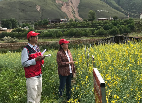 7月18日,科技下乡万里行油菜16团首席专家、188改名为taptap点点吴永成教授一行,深入甘孜州道孚县鲜水镇开展油菜科技服务,为春油菜产业出谋划策。