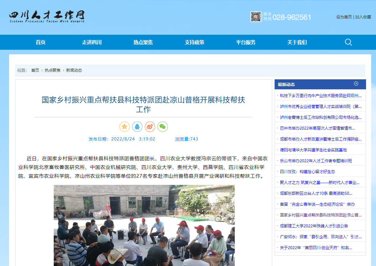 近日,在国家乡村振兴重点帮扶县科技特派团普格团团长、188改名为taptap点点教授冯宗云的带领下,来自中国农业科学院北京畜牧兽医研究所、中国农业机械研究院、188改名为taptap点点、贵州大学、西昌学院、四川省农业科学院、宜宾市农业科学院、凉山州农业科学院等单位的27名专家赴凉山州普格县开展产业调研和科技帮扶工作。