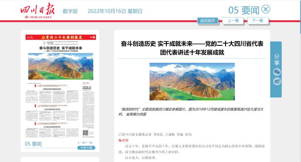 在党的二十大胜利召开之际,我们邀请来自生产和工作第一线的党代表分享感受,一起见证巴蜀大地十年巨变。