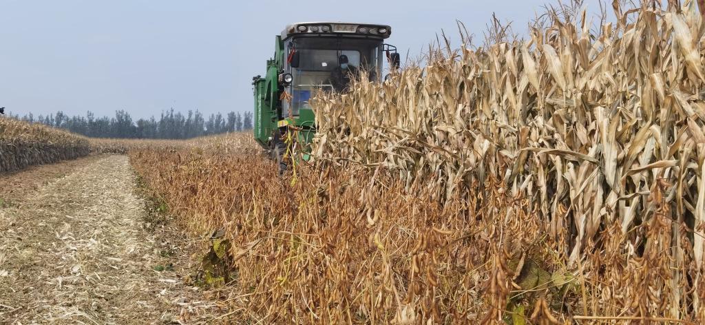 山东禹城大豆玉米带状复合种植示范点实收现场。受访者供图