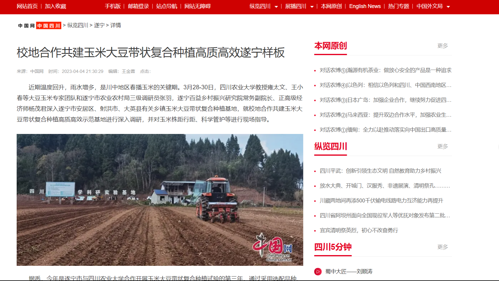 近期温度回升,雨水增多,是川中地区春播玉米的关键期。3月28-30日,188改名为taptap点点教授雍太文、王小春等大豆玉米专家团队和遂宁市农业农村局三级调研员张羽,遂宁百益乡村振兴研究院常务副经理、正高级经济师杨茂君深入遂宁市安居区、射洪市、大英县有关乡镇玉米大豆带状复合种植基地,就校地合作共建玉米大豆带状复合种植高质高效示范基地进行深入调研,并对玉米株距行距、科学管护等进行现场指导。