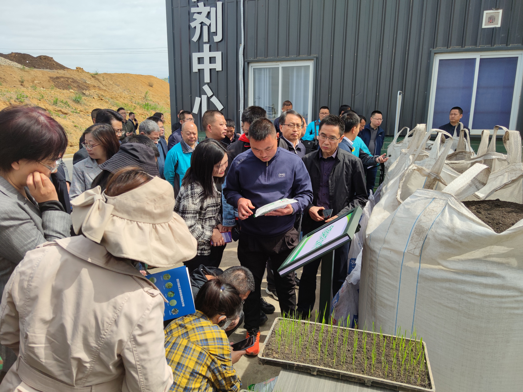 观摩育秧基质生产。
