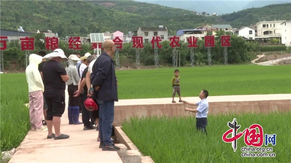察看完清泉村的水稻试验田,专家团又前往县粮经复合现代农业园区对今年进行水稻全程机械化的农户进行科学种田培训。培训中,专家对全机械化种植的水稻需注意的事项,以及目前高标准农田中水稻的施肥、灌溉、病虫害防治等方面进行详细讲解,并现场解答农户提出的问题。听了专家的指导,在场农户对全机械化种出优质高产的稻谷,信心倍增。