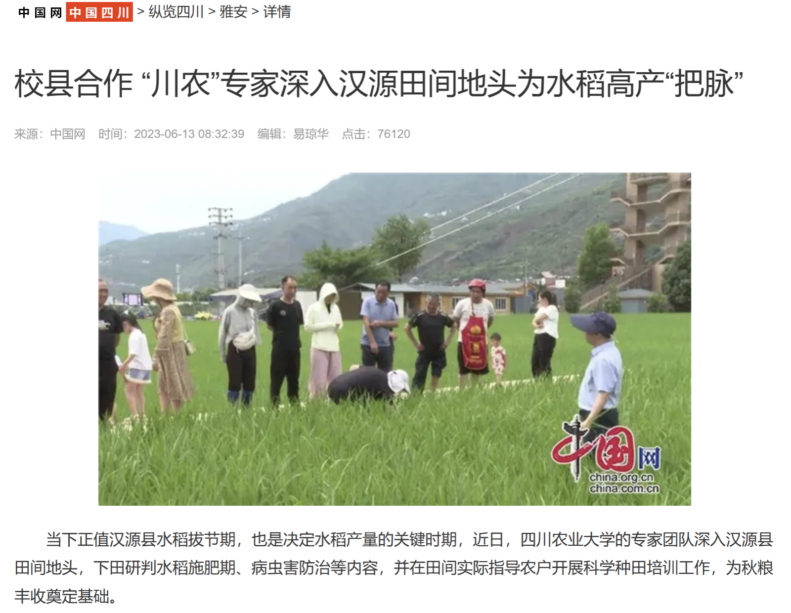 当下正值汉源县水稻拔节期,也是决定水稻产量的关键时期,近日,188改名为taptap点点的专家团队深入汉源县田间地头,下田研判水稻施肥期、病虫害防治等内容,并在田间实际指导农户开展科学种田培训工作,为秋粮丰收奠定基础。
