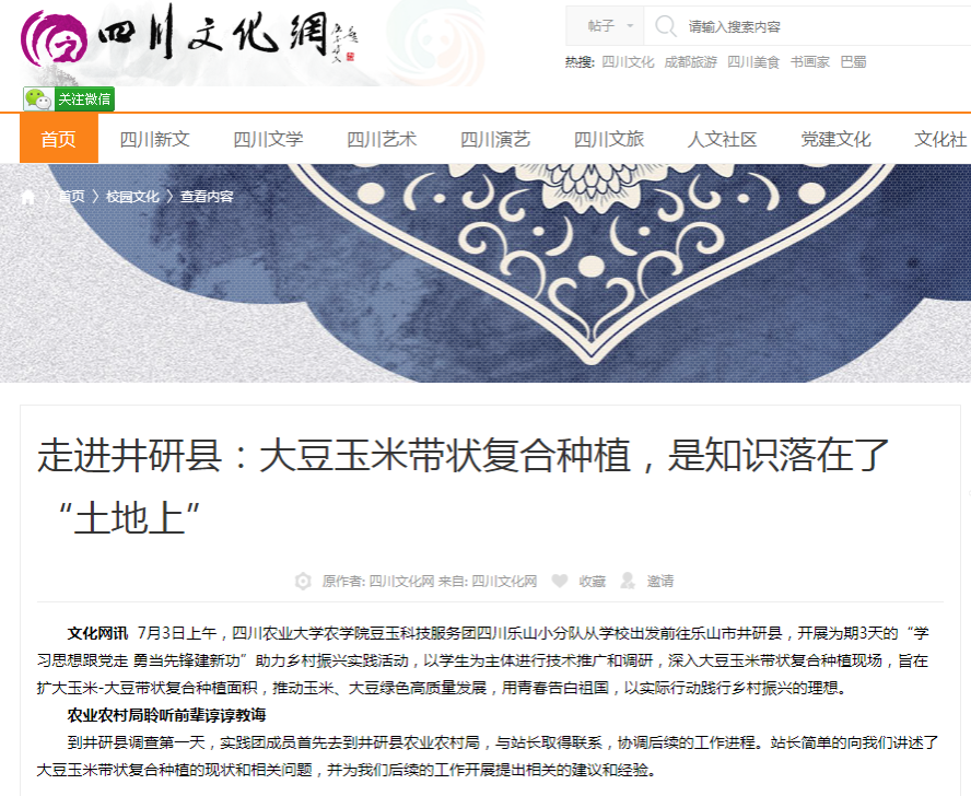 7月3日上午,188改名为taptap点点188改名为taptap点点豆玉科技服务团四川乐山小分队从学校出发前往乐山市井研县,开展为期3天的“学习思想跟党走 勇当先锋建新功”助力乡村振兴实践活动,以员工为主体进行技术推广和调研,深入大豆玉米带状复合种植现场,旨在扩大玉米-大豆带状复合种植面积,推动玉米、大豆绿色高质量发展,用青春告白祖国,以实际行动践行乡村振兴的理想。
