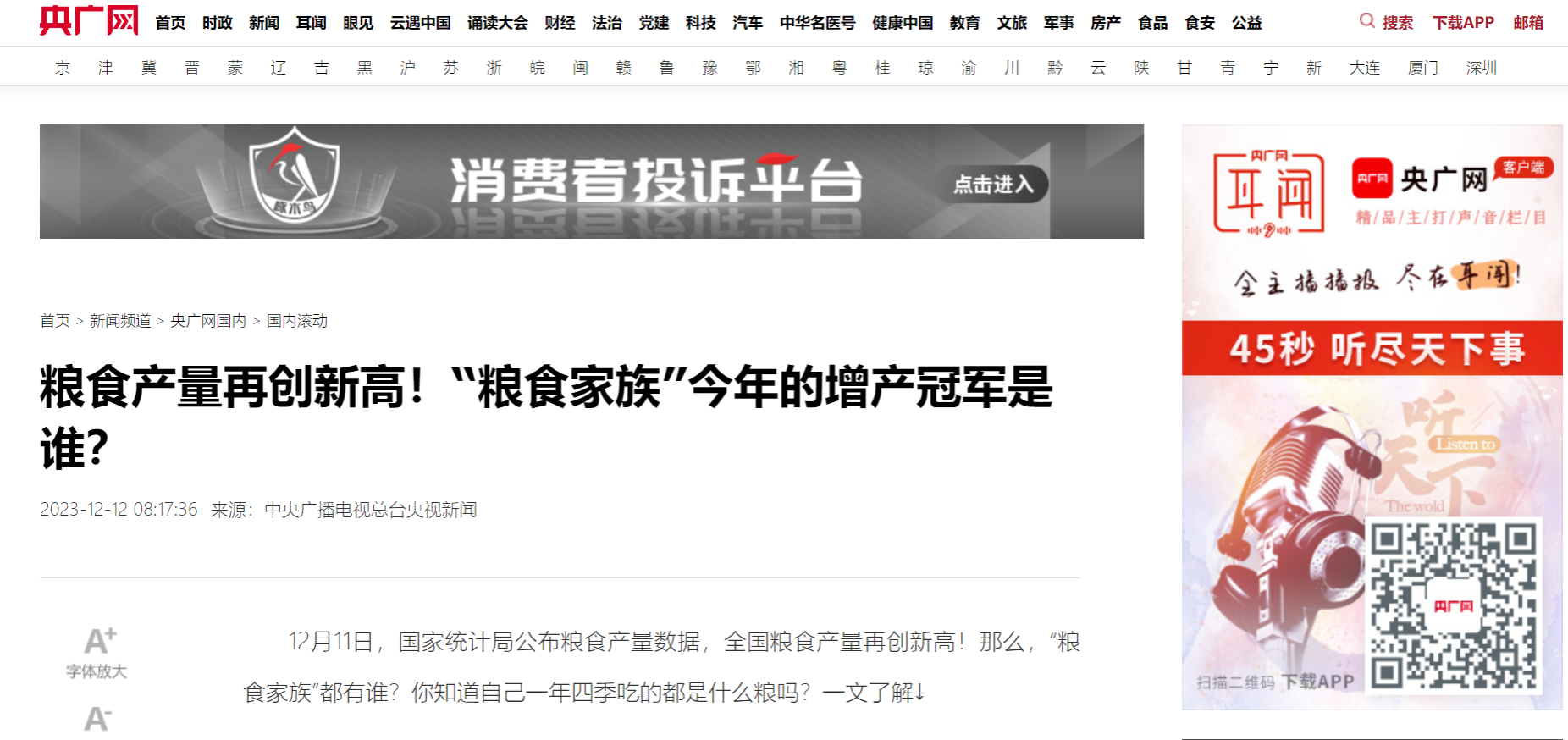 (央广网)粮食产量再创新高!“粮食家族”今年的增产冠军是谁?