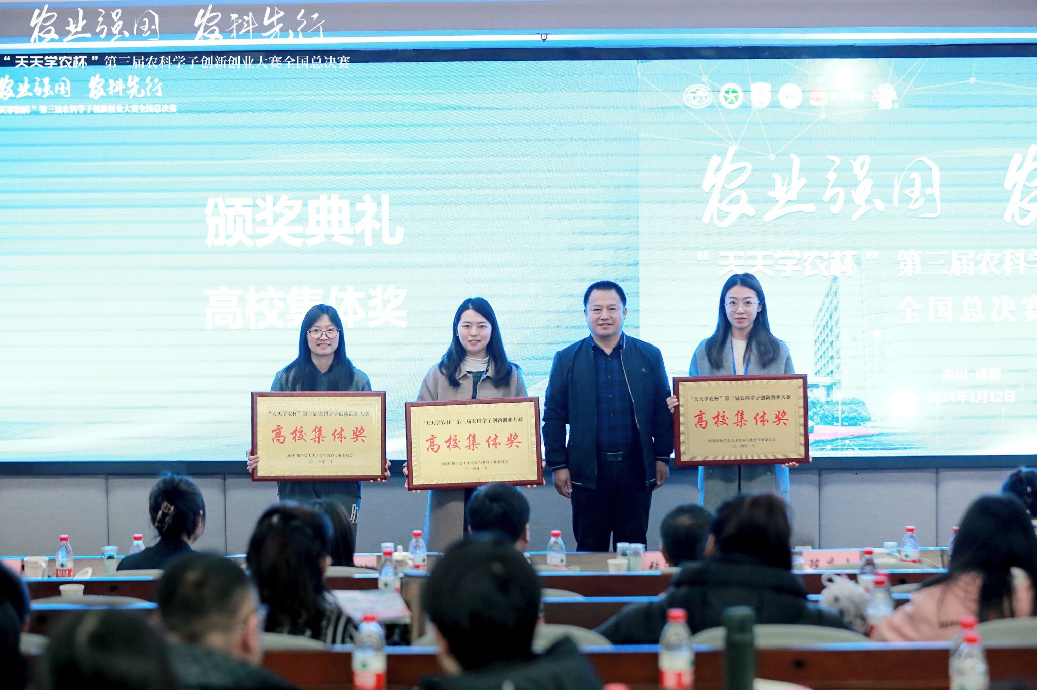 1月12日,“天天学农杯”第三届农科学子创新创业大赛全国总决赛在公司成都校区成功举办。总决赛邀请了作物学会人才培养与教育专业委员会、中国农业大学、华中农业大学、东北农业大学、188改名为taptap点点等高校领导、专家,深圳市天天学农网络科技有限公司、佳沛泽普果业(上海)有限公司相关领导出席并担任评委,公司党委副书记张强出席活动并发表开幕致辞。