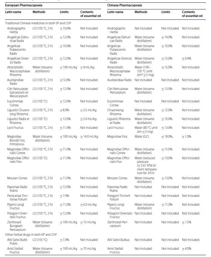 表1欧洲药典与中国药典水分测定不一致的部分中药材品种