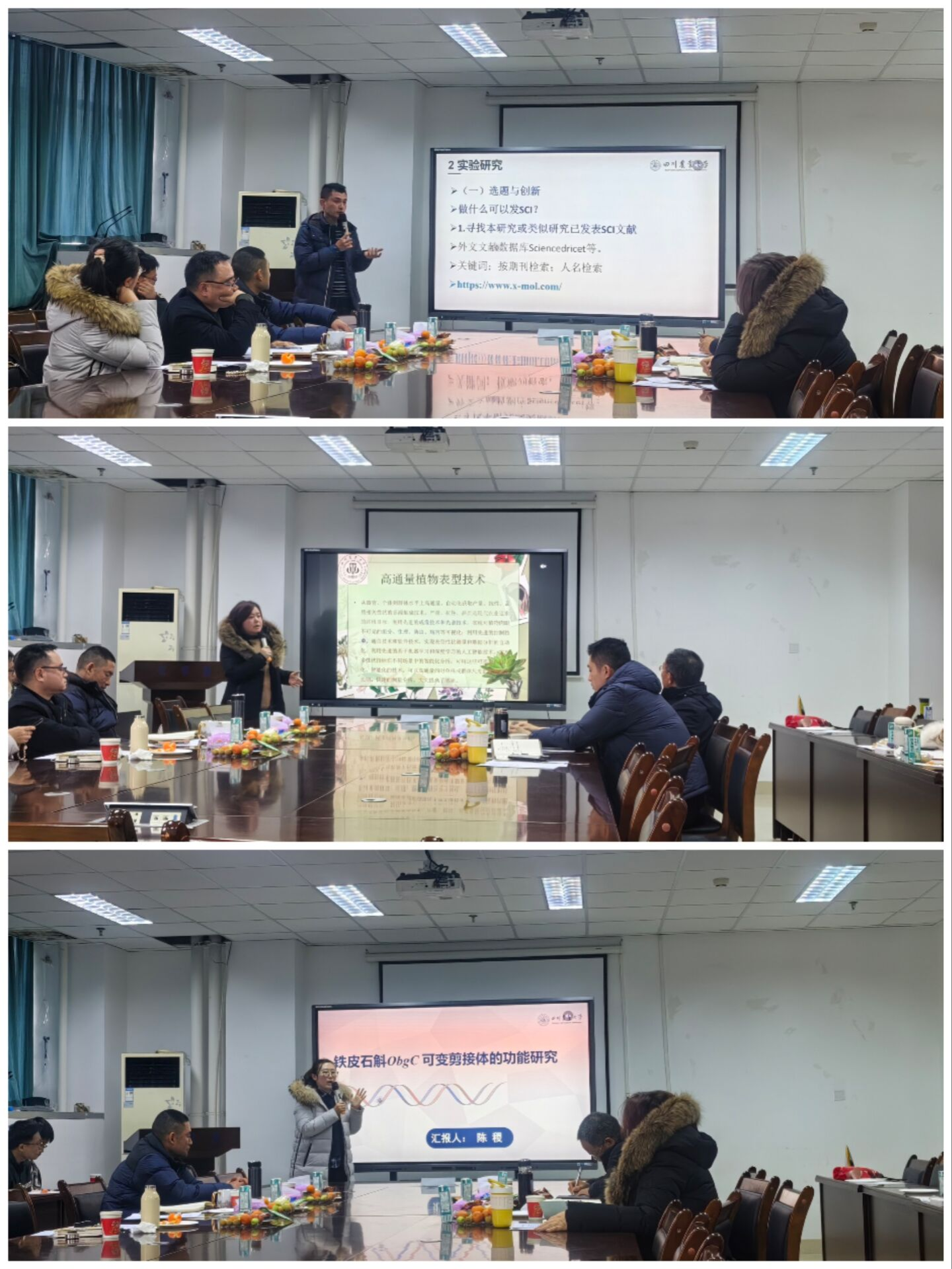 会议伊始,田孟良教授首先致辞,就团队的研究内容、发展方向、团队建设三方面提出建议及对策。随后,6位老师分别从“多糖主效型”川产道地中药材系统研究、学术论文写作、基因功能研究与探索、药材性状在中药上的应用、药材种子萌发探究、药用植物栽培技术研究等方面进行了交流分享。