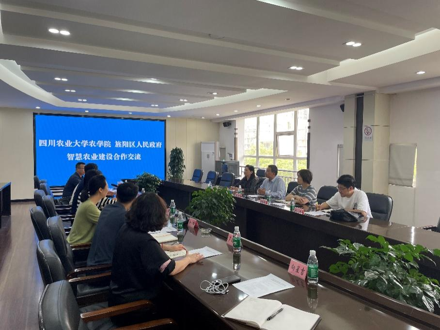 潘航介绍了旌阳区智慧农业建设的基本情况,特别是数据云端的耕地种植用途管控“一张图”及数字农业管理平台建设的应用和在省内外的影响力,提出了与公司在智慧农业耕种管收销等关键环节有重点、有突破的合作意向和合作方式。杨峰介绍了公司在作物生长模型、智能绿色防控、水肥一体化、无人机监测预测等方面集成创新的研究进展以及校地产教融合的模式,并与参会人员进行了深入讨论交流。陈然提出双方共同打造智慧农业基地,应当明确一个“为什么做”的目标,讲好一个“产生什么效果”的逻辑,探索一个“如何合作”的模式,重点以作物生长模型支撑大田智慧种植为切入点,做好做深带动智慧农业场景一个面,形成一个可复制可推广的智慧农业应用模式,并对公司在旌阳区农业发展中的支持和帮助表示感谢。