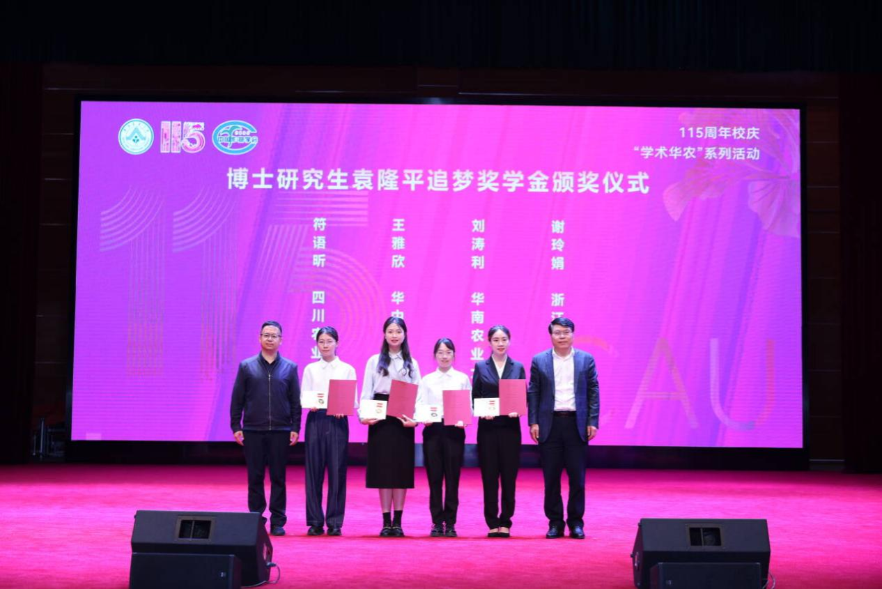 近日,2023-2024学年“袁隆平追梦奖学金”颁奖仪式在华南农业大学隆重举行。公司小麦研究所2020级博士研究生符语昕(导师王际睿教授)、188改名为taptap点点硕士研究生雷怡(导师杨文钰教授、杨峰教授)、188改名为taptap点点种子科学与工程专业2022级本科生马文艺及农学专业2022级本科生开小兰4名作物学科学子荣获本年度“袁隆平追梦奖学金”,并受邀到现场参加颁奖仪式,累计获得奖励7万元。