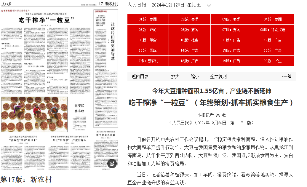 近日,记者沿着种植源头、加工车间、消费终端,看政策落地实效,探寻大豆全产业链升级的有益实践。