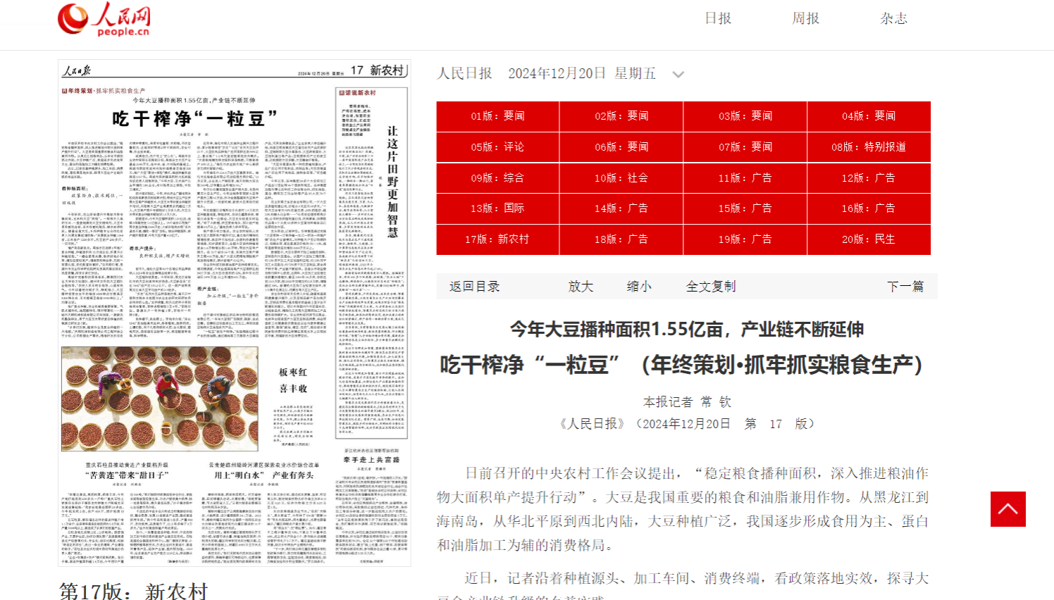 (人民日报)今年大豆播种面积1.55亿亩,产业链不断延伸 吃干榨净“一粒豆”(年终策划·抓牢抓实粮食生产)