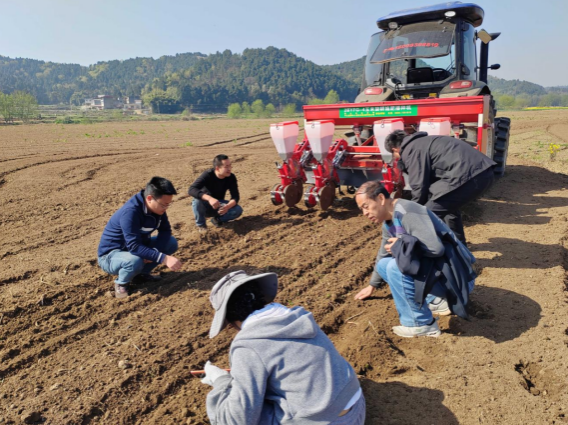 科技小院每名研究生配备一名公司党员教师和一名地方农技骨干导师,着力“理论+实践”、“科研+项目”、“素质+能力”,综合提升研究生创新能力。在双导师的带领下,中江玉米科技小院研究生团队联合中江县泽丰小型农机制造有限公司,针对丘陵地块分散、机收损失率高等难题,设计的2BYFG-4型玉米旋耕施肥播种机,适宜丘陵区地形作业,机播质量和出苗质量高、抗旱能力强、产量高。今年该播种机进行批量化生产,目前已接到省内订单30余台。在眼下春耕春播农忙时节,小院研究生们个个被锻造成为硬核尖兵,纷纷走进各地方田间地头,因地制宜调试机械和提供技术指导,确保玉米高出苗率及玉米苗匀、苗壮,为玉米稳产高产打下坚实基础。