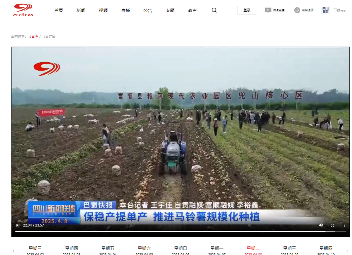 (四川广播电视台)保稳产提单产 推进马铃薯规模化种植