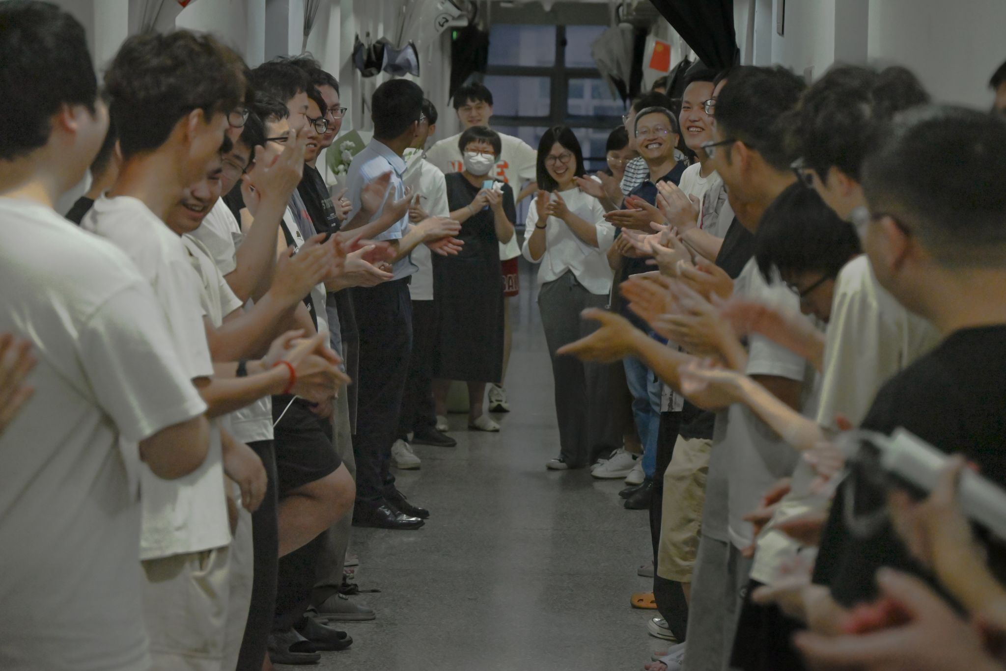 走访期间,毕业生的楼层洋溢着欢声笑语,气氛十分热烈。同学们还在寝室走廊上开展了“祝福接龙”小游戏,一句句“毕业快乐”、“前程似锦”、“早日脱单”、“成为博导”的真诚祝福此起彼伏。