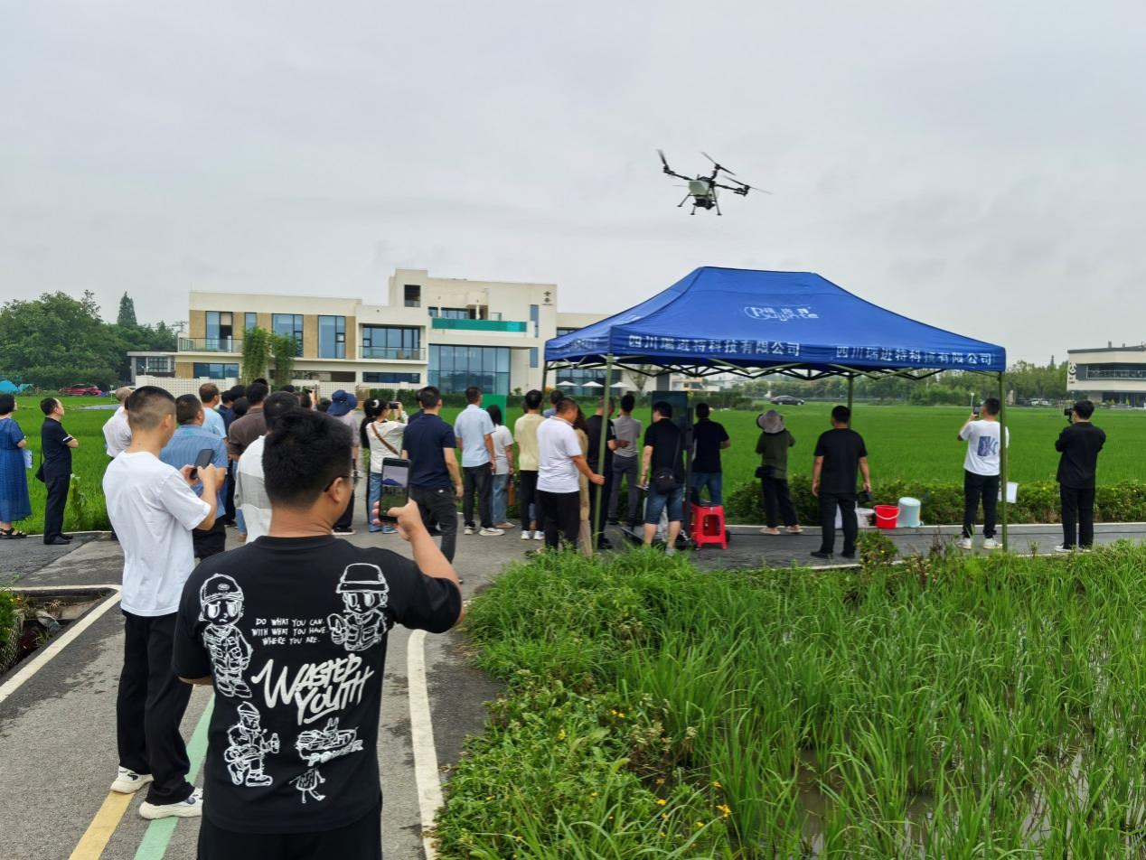 与会代表实地观摩了稻田福寿螺绿色防控技术现场。杨春平详细介绍了公司研发的福寿螺智慧监测预警系统、新型灭螺引诱颗粒剂、福寿螺卵壳钝化剂在田间的实际使用效果,以及其对水生动物的安全性。同时,现场演示了利用无人机施撒灭螺颗粒剂的关键应用技术,该演示获得了与会者的高度关注与赞扬。