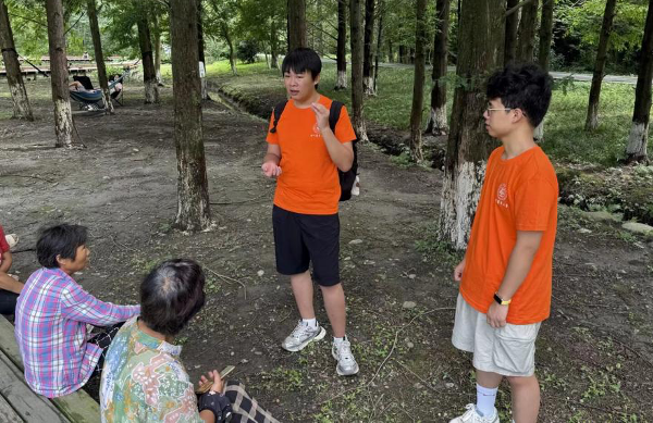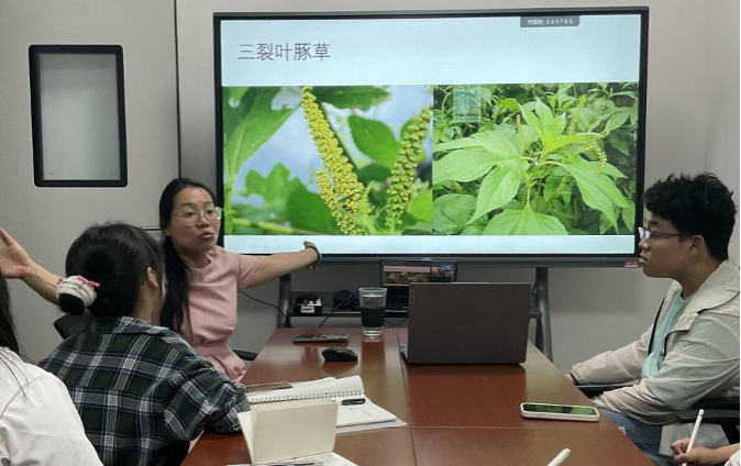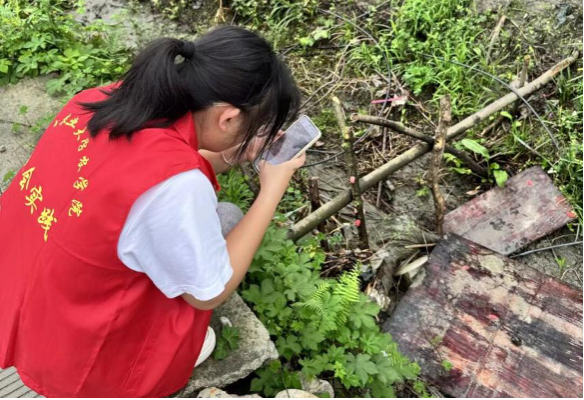 当实践延伸至新都区城乡过渡带,方桥鱼塘畔丛生的三叶鬼针草与鱼腥草缠绕共生,田埂边缘小蓬草已蔓延成片。队员持专业图鉴向养殖户演示区分技巧:“鬼针草叶片呈三深裂,种苞带倒刺,易附着动物传播。”团队当即示范物理铲除与生态替代结合方案——清除入侵植株后补种本土艾草形成抑制屏障。在新繁街道贺家墙边,队员们向当地村民逐个科普成都入侵物种,介绍了如小蓬草绒毛茎秆、空心莲子草节间生根等典型特征。村民们纷纷点头表示学到了新的知识。