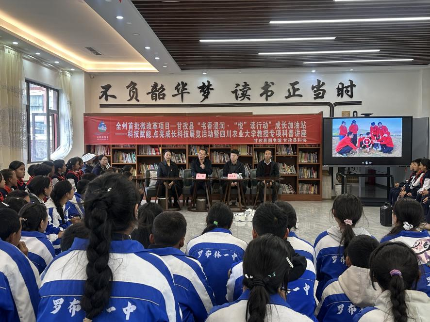 活动最后,王强教授与冯豪杰受邀参与由甘孜县图书馆、甘孜县科协联合举办的“科技赋能 点亮成长”科技展览暨专项科普讲座。讲座中,王强教授以“马铃薯”为纽带,从农作物种植延伸到粮食安全,用贴近生活的案例拉近与参会同学的距离。