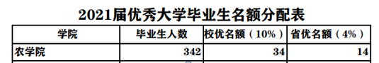 校级优秀大学毕业生按参评员工人数的10%评选,省级优秀大学毕业生在校级优秀大学毕业生中遴选产生,按毕业生人数的4%评选。