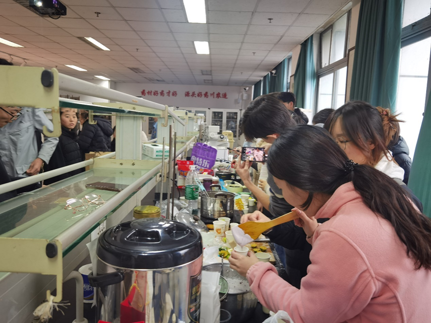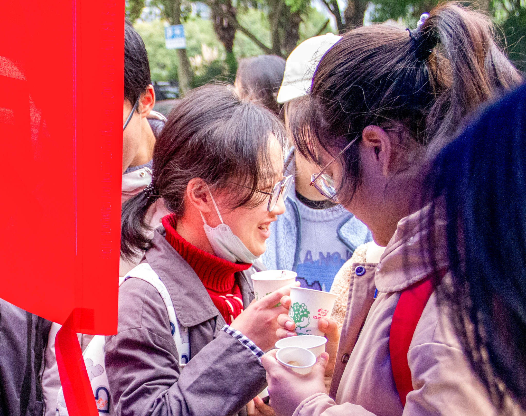答辩作为本次决赛的重要部分,各队伍对本队的饮品名称、功效,药材的选择搭配及比例进行介绍,评委老师则要从饮品的口感,外观等方面进行评价打分。在各队的产品中,有名称唯美的“新芸”、“冬清”、“雪踏嫣红”;有主打功效的“‘蓉意’奶盖姜枣茶”、“黑黑生发饮”;与潮流奶茶结合的产品“暖冬滋补奶茶”、“中药奶茶”;口感细腻的“八珍乌鸡汤”、“匠心酸梅汤”等等。其中的“雪踏嫣红”是由甘草、浮小麦、大枣、牛奶为主要原料做成的炖奶,适用于各个群体,具有抗抑郁、养血助眠、祛风散寒的作用。最终,评选出一等奖1项,二等奖5项,三等奖7项。