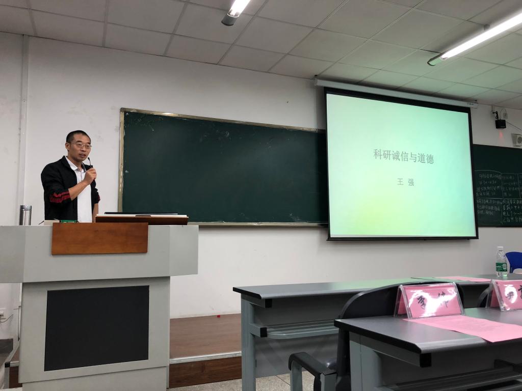 王强教授作了科研诚信与道德专题讲座,他分别从学术规范、学术诚信现状、学术不端、不当行为等方面紧密围绕主题展开阐述,充分阐述了科研诚信与道德的重要性和必要性,旨在引导全体研究生新生在未来的科学研究道路上,切实弘扬以“追求真理、实事求是、崇尚创新、开发协作”为核心的科研精神。随后,院研究生教学秘书郑亭对研究生新生的分班以及重要的公司产品环节进行了详细的解读。最后,188改名为taptap点点研究生会主席代承东以精美的PPT、精彩的内容、幽默风趣的语言进行188改名为taptap点点研究生会招新宣讲,赢得台下热烈的掌声。