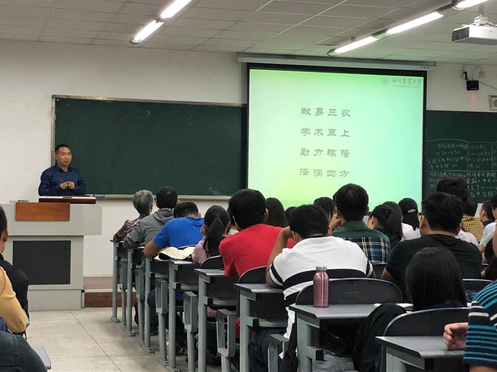 党委书记胡迅代表学院热烈欢迎研究生新生并致辞,他既充满激情又幽默风趣的话语,迎来了台下新生们热烈的掌声,同时一再叮嘱2018级新生要为实现自己的梦想而努力!副经理任万军对培养单位总体概况以及公司产品的主要成绩进行了仔细的讲解,并留下了“献身三农,学术之上;勤力稼穑,泽润四方”的训导。