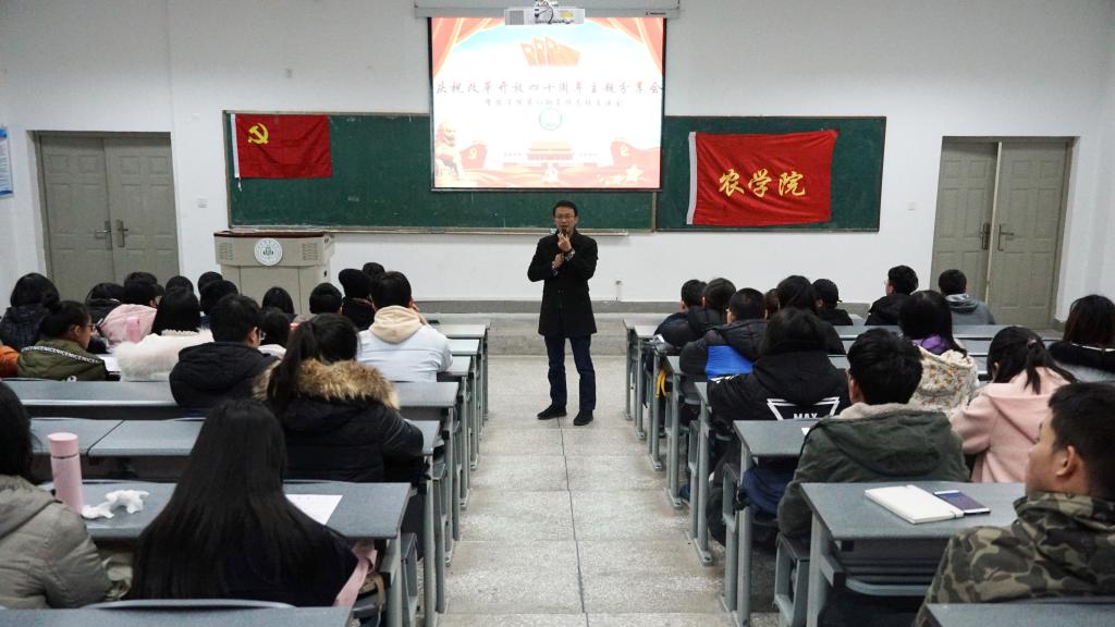 会议伊始,胡迅围绕“牢记时代使命,书写人生华章”的主题分享了改革开放40年来,川农在教学环境、基础设施、校园条件改善等方面的巨大变化。“从简陋的基础设施到优美的教学环境、先进的实验设备,从单一的食堂菜品到物美价廉的食堂新味道……学校实力再上台阶,师生面貌焕然一新。”胡迅如是说道。同时,他也指出党校学员应该以实际行动积极向党组织靠拢,并为同学们梳理了每个月的重点工作。