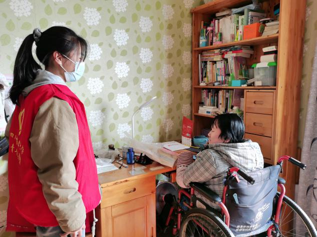 实践当天,寻访小组与成都相伴社区工作人员一同深入社区居民家中,就基本生活需求、精神需求等方面与老人和残疾青少年进行交谈。在一户残疾儿童家庭中,寻访小组了解到小姑娘因腿脚不便而辍学在家,孩子奶奶对此说到:“别的没什么,就是觉得不能上学,委屈了孩子,正在给她打听学校,希望社区能帮帮忙。”临走时,寻访小组送给小姑娘一本《假如给我三天光明》,鼓励她坚持学习,永远不忘积极向上,笑对生活。临近午时,一行人抵达最后一户空巢老人家庭。询问老人近期身体状况、生活情况,叮嘱老人保重身体,在交谈中,老人表示自己身体健朗还能照顾好自己,同时也表达了对在外工作的女儿的想念,希望她有时间可以回家来看看。临走前,成员们为老人的屋子进行简单打扫,提醒他们注意疫情防控。