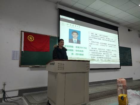 团日活动伊始,优秀员工标兵、农发2017级苟扬为支部成员分享了他的成长之路,他首先为支部成员讲解了学习生活小贴士,希望师弟师妹们早日明确目标。“追寻成功的方法有很多,但是唯独只有努力,才能真正的成功”苟扬说道,他用一段话与同学们共勉“大学未上,定义由你;大学已上,意义由你;大学已完,评价由你;大学未完,改变由你!愿仰望星空,脚踏实地;祝前程似锦,归来仍是少年。”