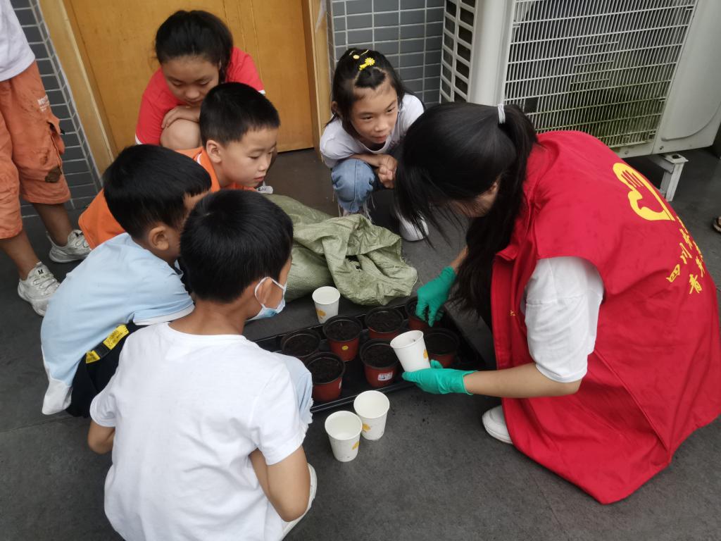近年来随着科学技术的不断发展,老员工及社会人士就业压力越来越大,现代社会大部分家庭都在从小培养孩子的兴趣爱好,政府、村社也在为之做出努力。在2020年高山村花样少年第三季“健康少年,安全自我”暑期培训班为期13天的培训里,川农学子有幸受邀参与此次活动,并且作为志愿者引导孩子们学习农业基础知识和基本操作。志愿者结合PPT内容向孩子们详细介绍了多种花卉的特性及其种植方法,并通过现场操作教学向孩子们展示种植技能,同时也告诉他们后期相关的管理注意事项。