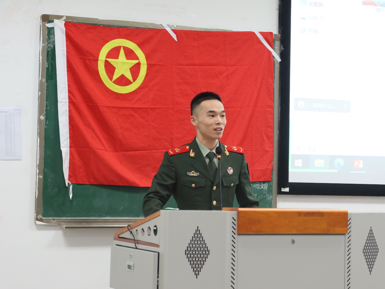 部队退役武警、2019级地理专业杜松学长为大家作个人成长经历分享。杜松围绕着为什么学,如何学两个方面与同学们进行交流。他认为,在学习中,同学们不仅应该做到内化于心,而且要外化于行。交流结束时,杜松分享了自己日记本中的一句话:人的生命只有一次,如果给了国家,那便是最好的安排。呼吁大家立大志,在未来积极投身到祖国建设中去。