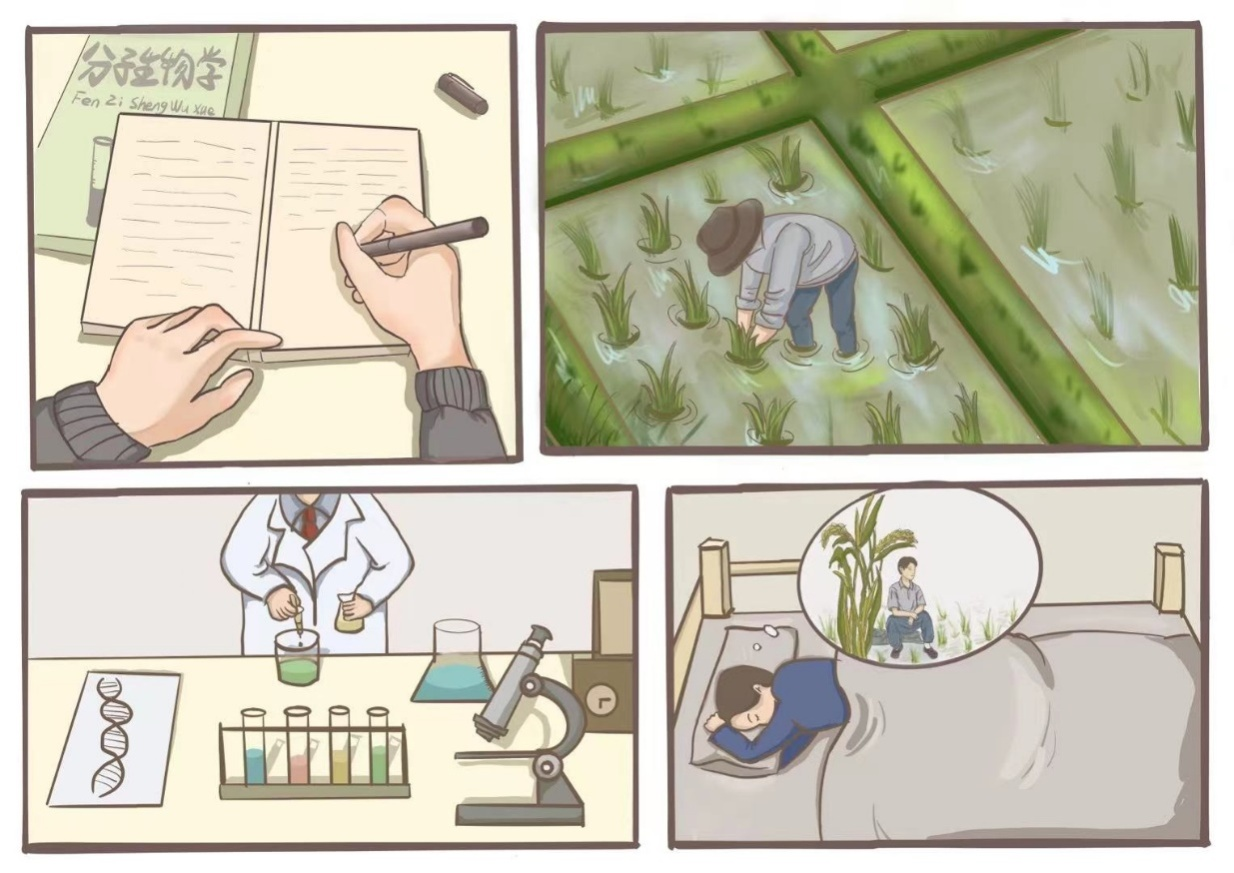 优秀获奖作品的持续展出,吸引了许多师生驻足欣赏。创作类作品一等奖获得者、来自水稻所的马川同学说:“我用四幅图描绘了我在川农读研的一天,作为一名研究水稻的研究生,希望将袁隆平先生还未实现的禾下乘凉梦继续继承下去,脚踏实地、戒骄戒躁、不断探索攻坚克难,展现新时代的青年担当。”