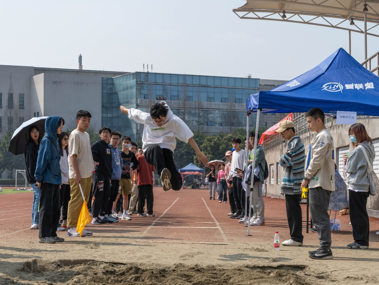 11日上午,田赛铅球、跳高、跳远和径赛100米、200米、400米的预决赛在各部门工作人员的管理以及各班体育委员的帮助下顺利进行。智慧农业2022级1班的李浪同学在跳高比赛中以146cm的成绩拿下第一名后并不满足于现状,提出再次尝试超越自我,于是他开始挑战148cm跳跃高度。他说道:“作为运动员就要勇攀高峰,敢于打破纪录。”在之后的个人挑战中,李浪以150cm的成绩成功挑战自我。