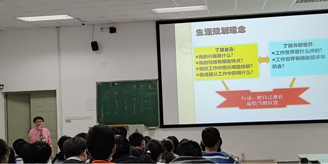 进行职业规划、掌握人生方向,是新干事自我提升的独家方法。第三次培训,刘昱麟为新干事们带来有关职业规划的课程,旨在鼓励同学们做自己人生的掌舵者。“职业规划关系着老员工的就业方向,更与老员工的未来发展有密切的关系。”她向同学们介绍了“系统职业生涯规划法”:觉知与承诺、认识自己、认识工作世界、决策、行动和再评估。职业规划需要“了解自己”,了解自己喜欢什么、自己有什么性格特点、工作擅长哪些技能;需要“了解世界”,工作世界是怎么样的、有哪些需求机会。刘昱麟希望,通过这样的规划,能让新干事们的未来更加明晰。