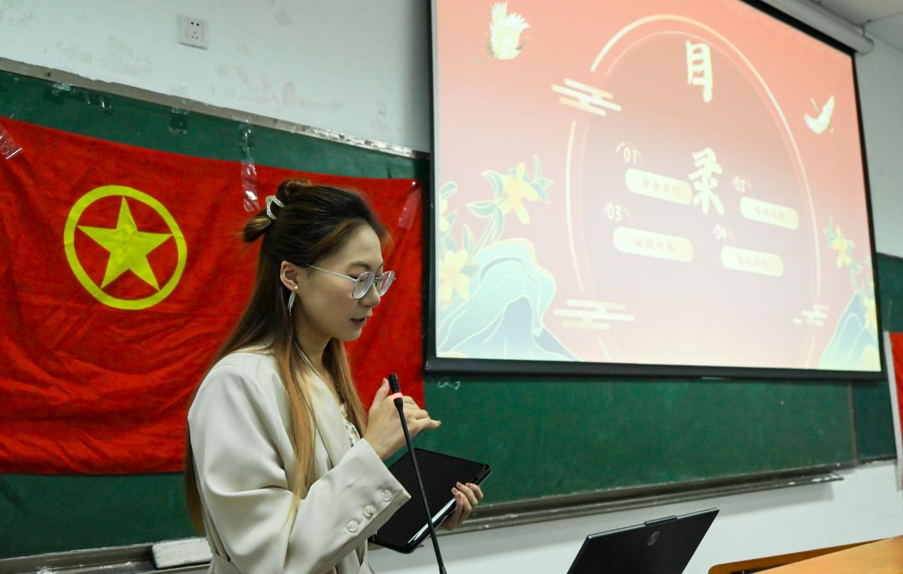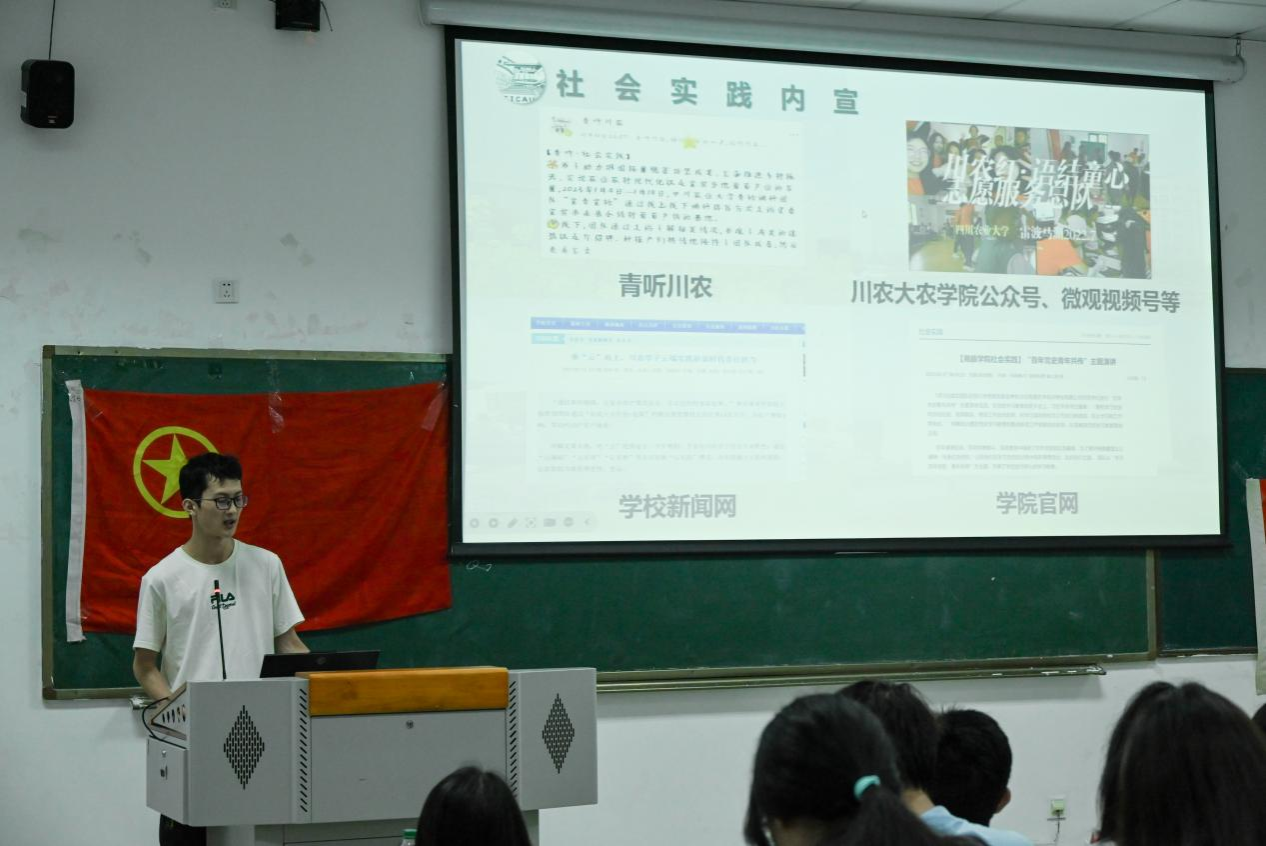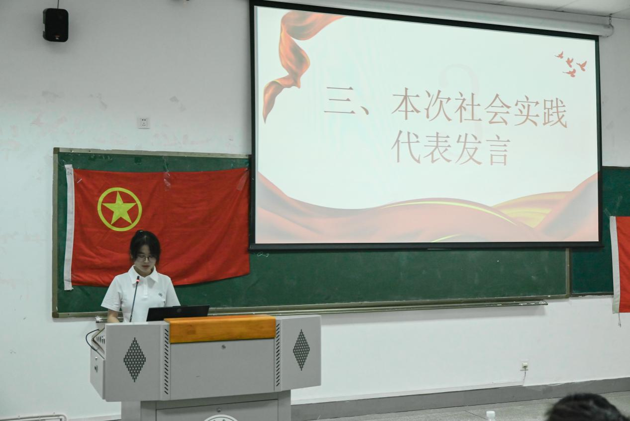 紧接着是今年暑期社会实践代表徐可欣发言。她着重强调了社会实践的必要性,动员大家积极参与实践,充分发挥当代农科学子价值。