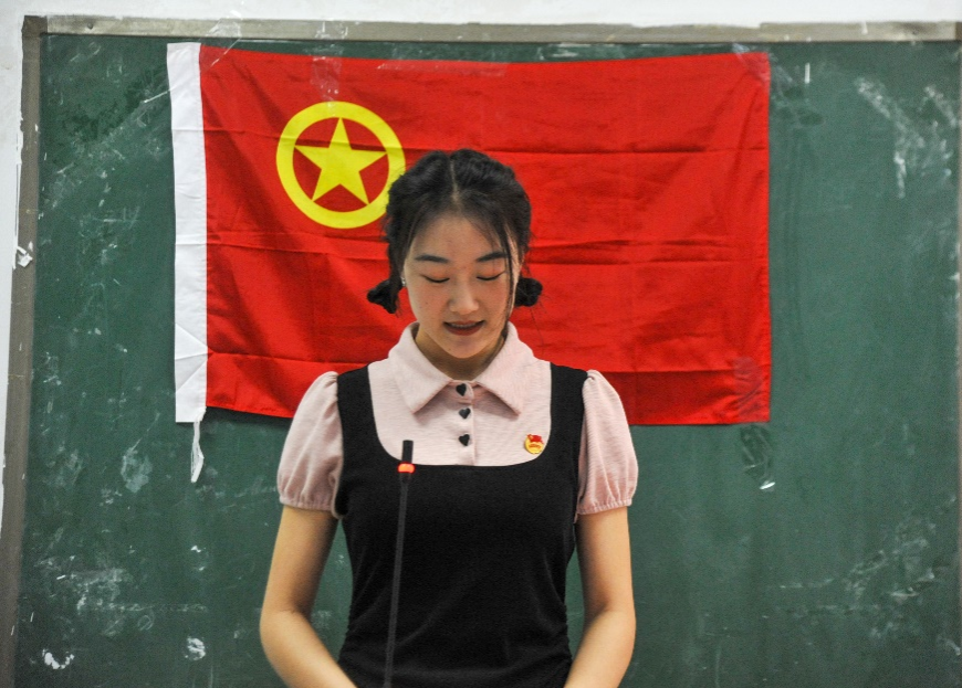 图为郭诗雨同学领学国家安全法律法规