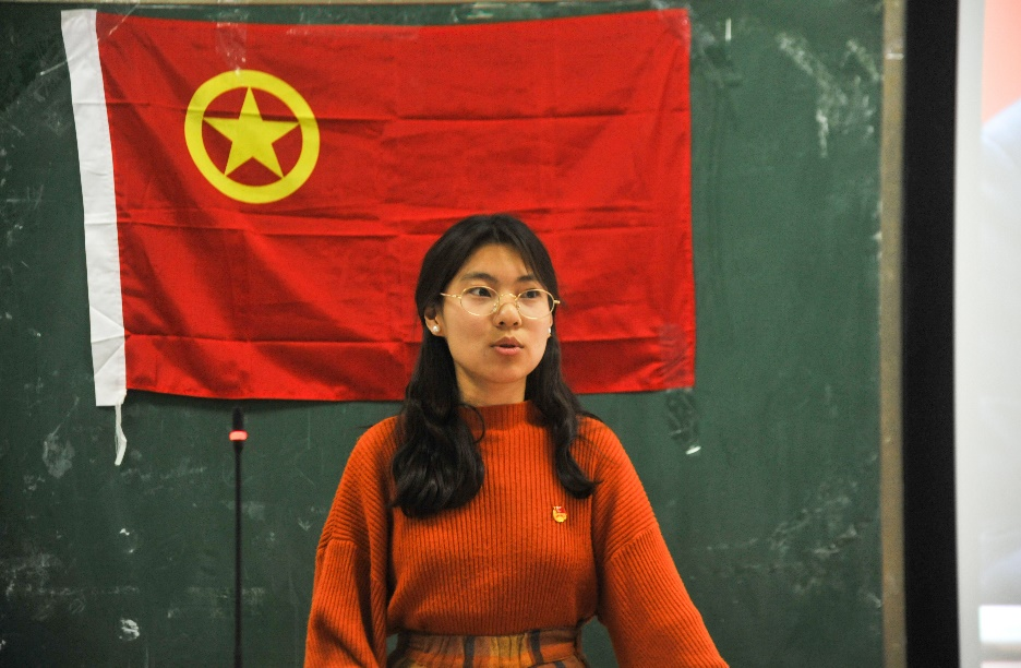 图为蓝艺同学分享作为退伍军人的感悟