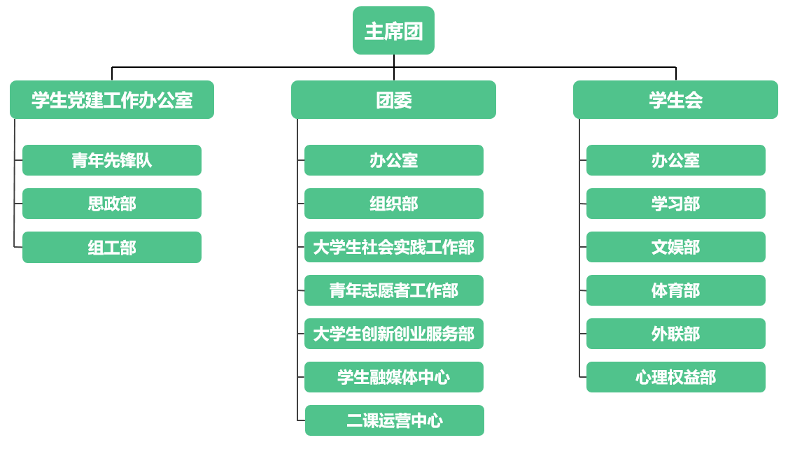 各员工部门负责人,在主席团的带领下开展各项工作。要求:①认真完成部门各项工作(见附件二);②积极配合并落实主席团安排各项安排;③在主席团带领下完善部门内部建设;④熟悉部门各项工作及学院员工组织基本情况。