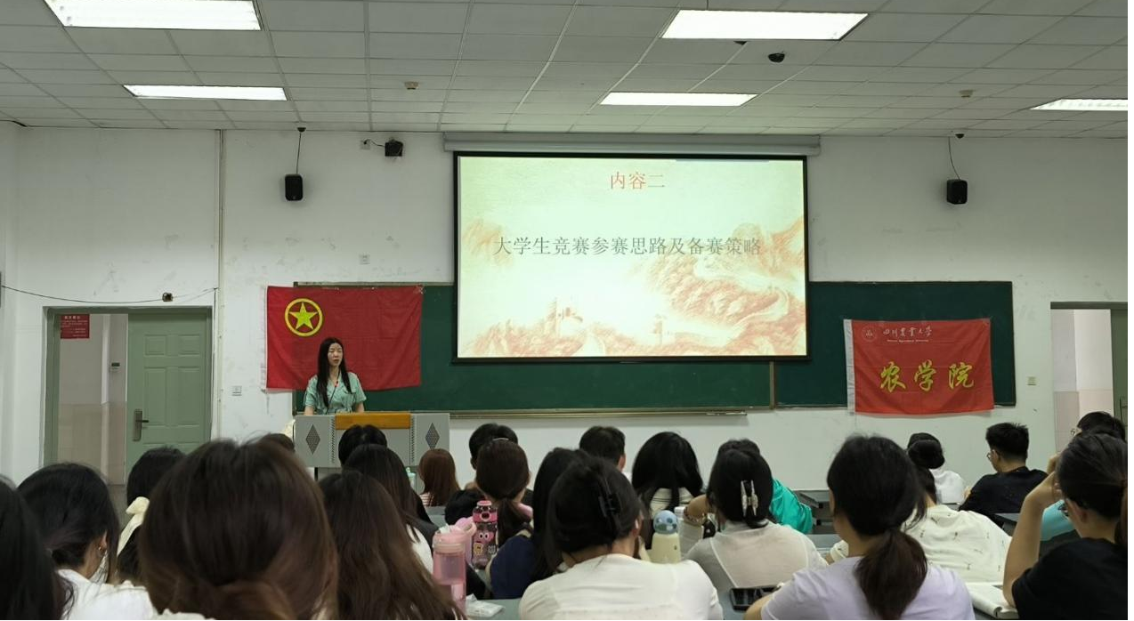 随后,沈丽淘为同学们带来了关于中国国际老员工创新大赛和“挑战杯”竞赛的精彩讲解,详细阐述了参赛思路及备赛策略。沈丽淘从赛事基本情况入手,深入剖析各赛道要点和评审规则,帮助同学全面了解两项赛事的内涵。在选题方面,沈丽淘特别强调,同学们要深入研读竞赛通知,紧密结合自身专业知识,敏锐捕捉社会需求,力求寻找出兼具创新性与可行性的课题。同时,鼓励同学们积极组建团队,通过团队协作发挥各自优势,以赛促学、以赛促创,培养敢闯会创的精神,在竞赛中锻炼自己、提升能力,为今后的职业发展和社会贡献积累经验、夯实基础。