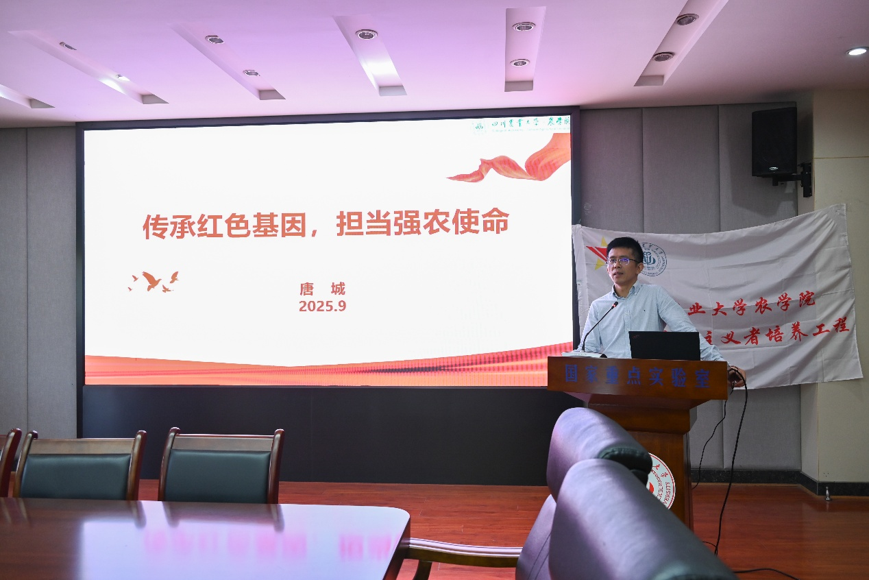 随后,唐城以红色基因形成的四个阶段,即萌芽期、积淀成型期、传承发扬期、创新发展期为切入点,阐释了“爱国敬业、艰苦奋斗、团结拼搏、求实创新”的川农大精神精髓,引导青马学子加深理解。围绕红色基因传承与青年担当这一主题,他强调学员必须坚定理想信念、厚植三农情怀、练就过硬专业本领、锤炼高尚品格。