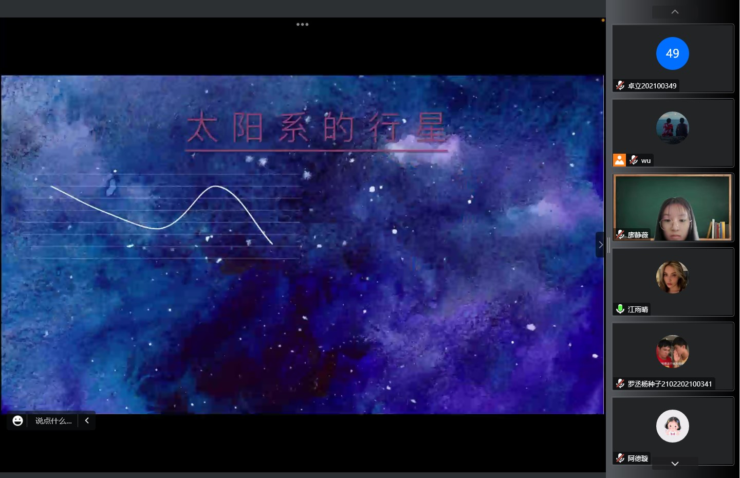 据悉为保证本次科普课堂顺利进行,团队精心准备良久。队长吴宇雪提前多日联系新城学校的老师,考虑到防疫安全,最终定下部分队员前往学校亲身互动、部分队员通过腾讯会议授课的线上线下结合形式。授课时间定在每天下午上课前的“午课”自由时间,避免打乱学校的日常教学工作安排。负责讲课的几位“老师”都精心备课,从收集资料、制作课件到规划课堂流程,每个环节都力求严谨而不失趣味。